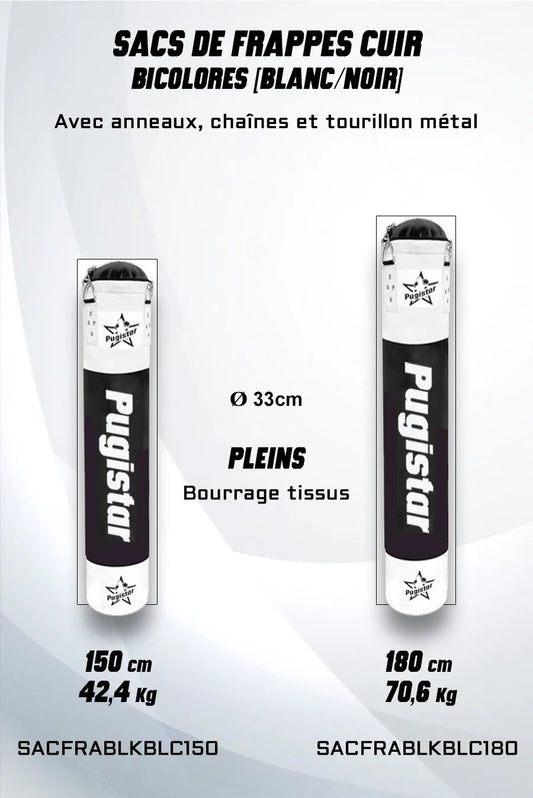 Sac de frappe plein cuir bicolore : noir et blanc Pugistar