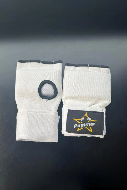 Ens. gants à lacets + casque cuir bleu/blanc/rouge Pugistar