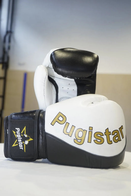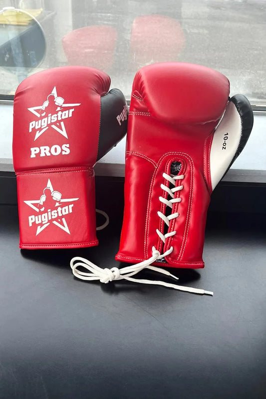 Paire de gants cuir à lacets bleu/blanc/rouge Pugistar