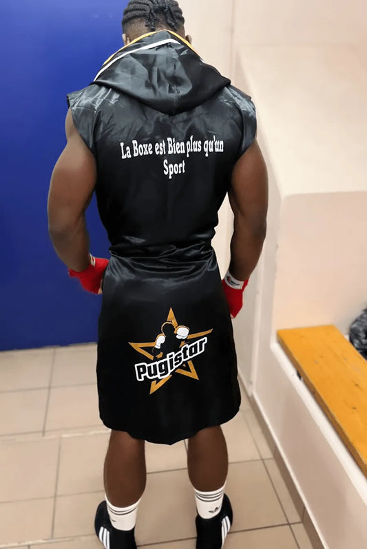 Short noir et Or Pugistar + T-shirt unisexe noir logo blanc Pugistar